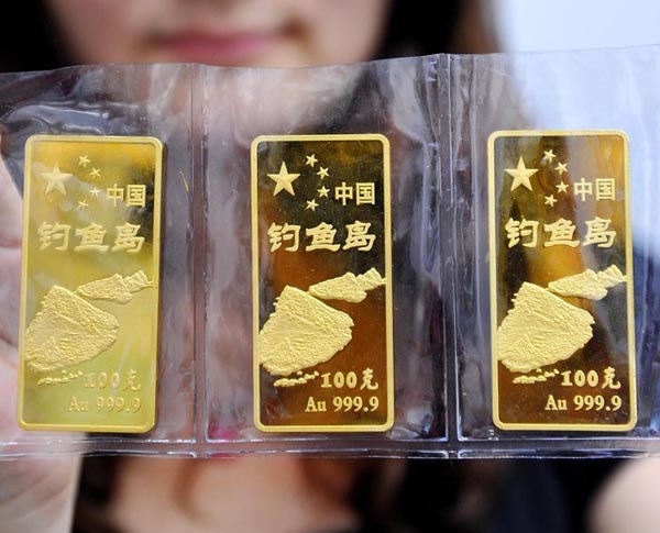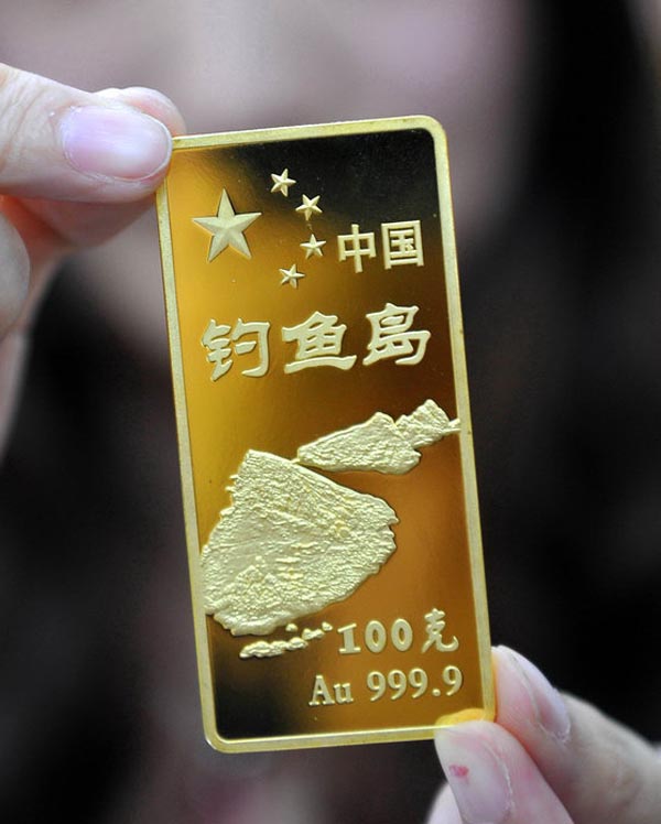 國內(nèi)首款黃金金條以釣魚島命名的黃金制品、“中國釣魚島金條”入市面世,最重的100克 最輕的只有1克。