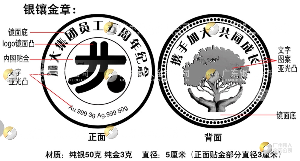 廣東銀人金幣/紀念幣制造廠家——是經(jīng)中國人民銀行批準,持有央行《經(jīng)營流通人民幣許可證》,由國家政府單位認可批準、具備資質(zhì)、合法銷售定制金銀幣、紀念幣的金幣公司, 一直致力于金銀幣、紀念幣、獎章、獎牌、徽章、紀念章的設計制作、模具開發(fā)、生產(chǎn)定制。