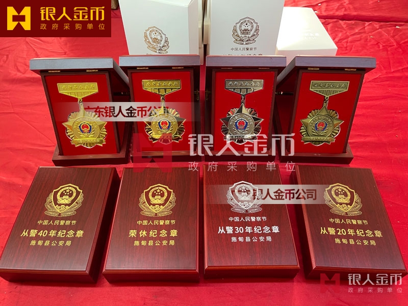 公安民警輔警安保從警10年榮譽(yù)銅質(zhì)紀(jì)念章、從警20年榮譽(yù)銀質(zhì)紀(jì)念章、從警30年金質(zhì)榮譽(yù)紀(jì)念章