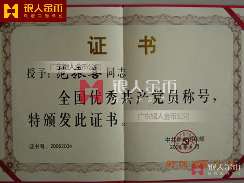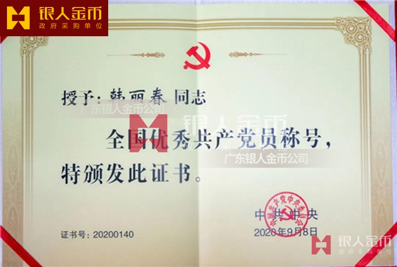 中共中央/中組部2020年“全國優(yōu)秀共產(chǎn)黨員”稱號獎?wù)?、獎牌、證書(實(shí)物)