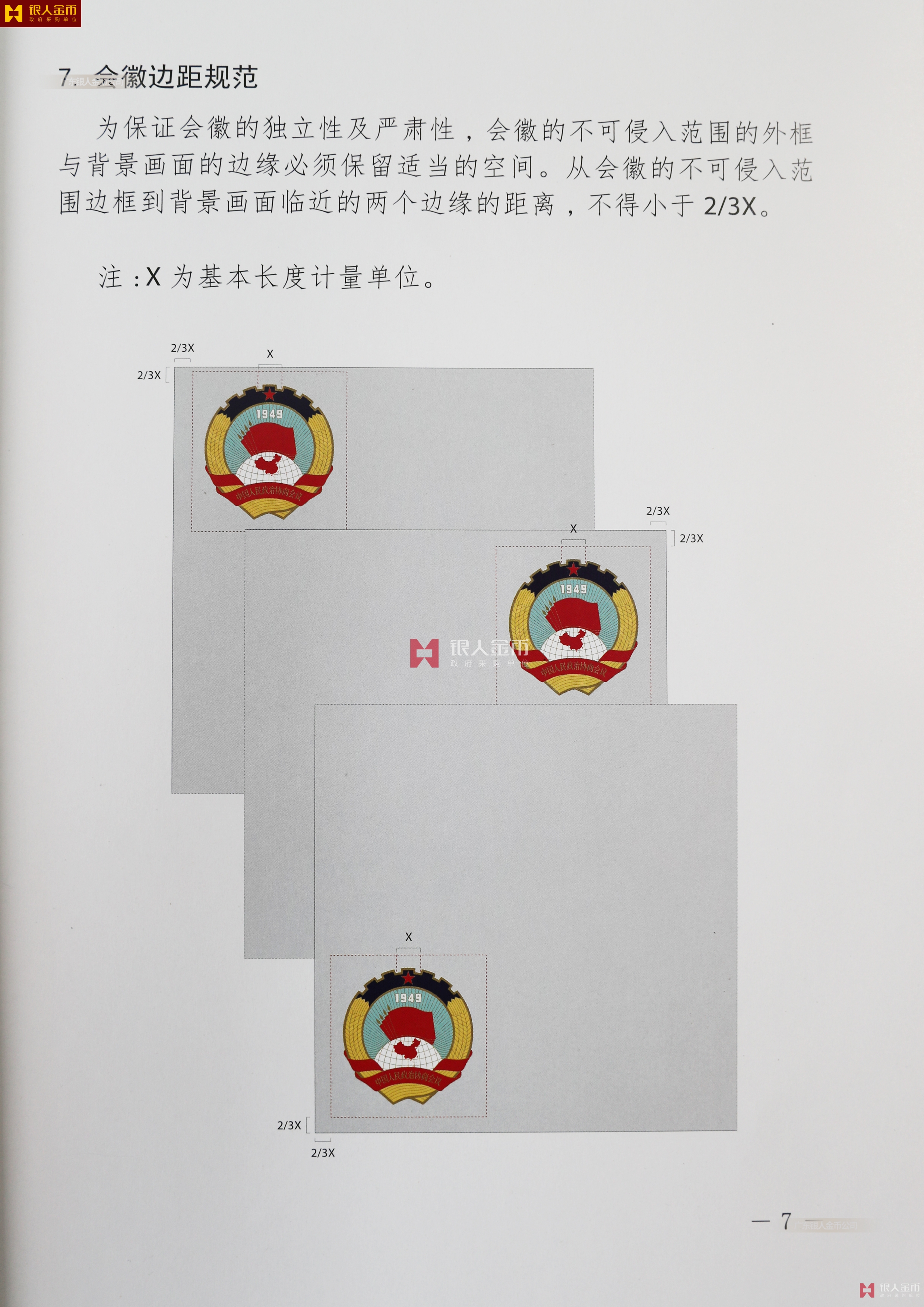 與背景畫面的邊緣必須保留適當(dāng)?shù)目臻g。從會(huì)徽的不可侵入范圍