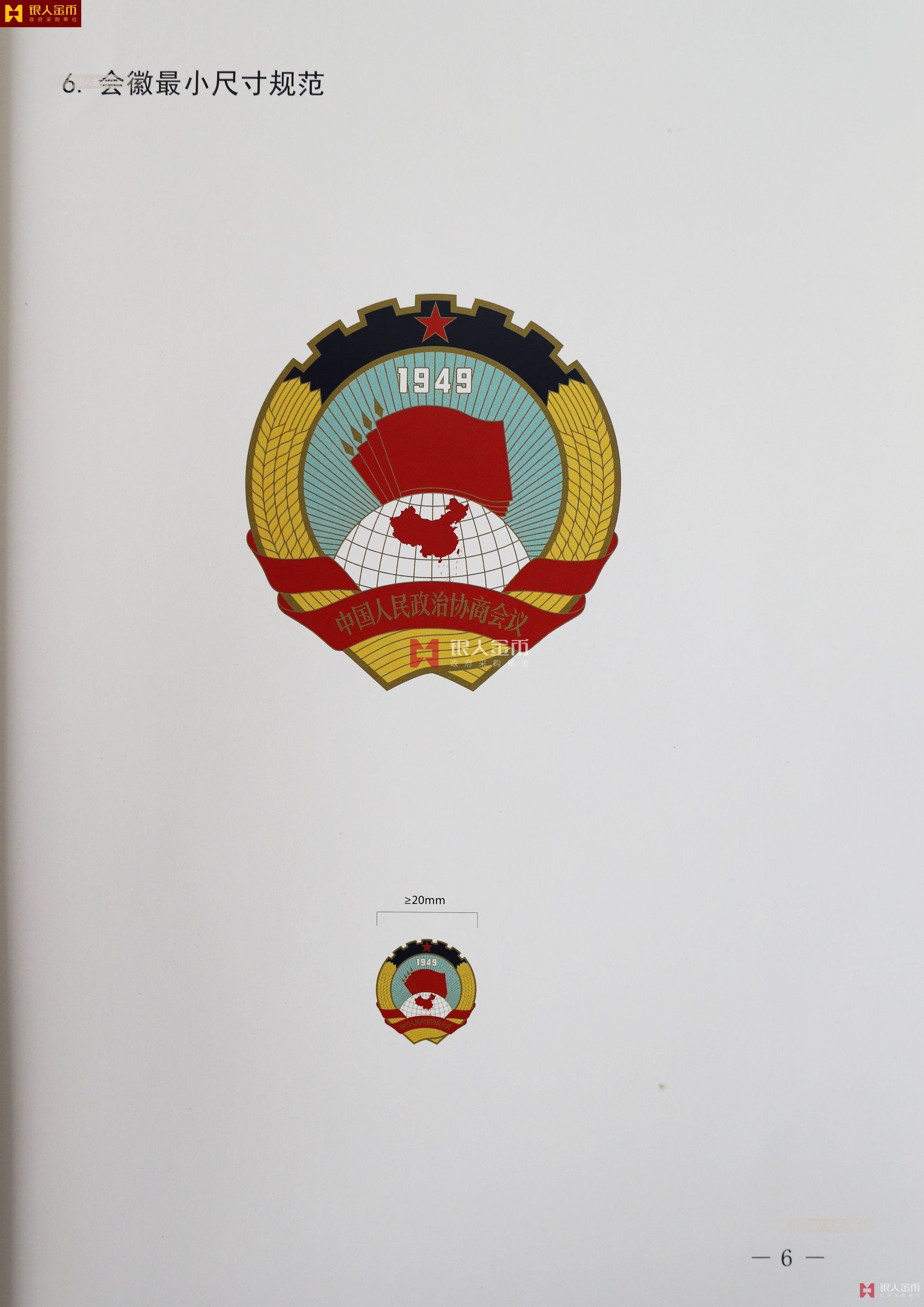 政協(xié)會(huì)徽尺寸最小直徑大于等于20mm。