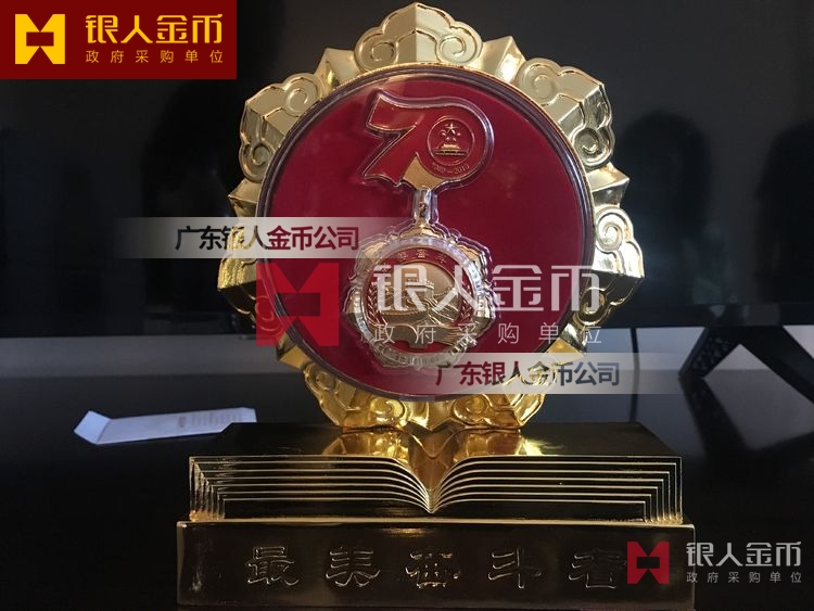 “最美奮斗者”榮譽(yù)獎(jiǎng)?wù)虏捎勉y胎鍍金工藝完成,獎(jiǎng)?wù)轮睆?9mm,寓意為1949年中華人民共和國(guó)成立,獎(jiǎng)?wù)潞?mm,寓意慶祝中華人民共和國(guó)成立70周年。獎(jiǎng)?wù)律喜糠譃橹腥A人民共和國(guó)成立70周年活動(dòng)標(biāo)識(shí),下部分為“最美奮斗者”獎(jiǎng)?wù)拢w設(shè)計(jì)體現(xiàn)儀式感、莊嚴(yán)感和時(shí)代感,彰顯“禮贊新中國(guó),奮進(jìn)新時(shí)代”的精神內(nèi)涵。