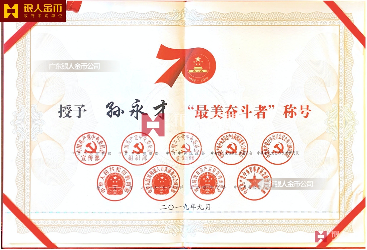 中共中央宣傳部/中共中央組織部"最美奮斗者"榮譽(yù)稱號(hào)獎(jiǎng)?wù)聞渍录o(jì)念章獎(jiǎng)牌及榮譽(yù)證書(圖)