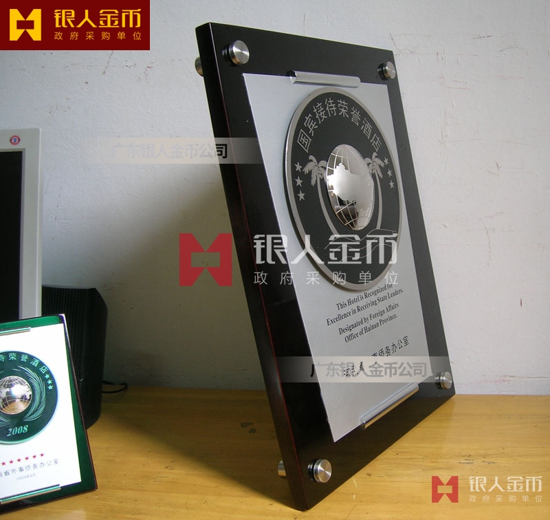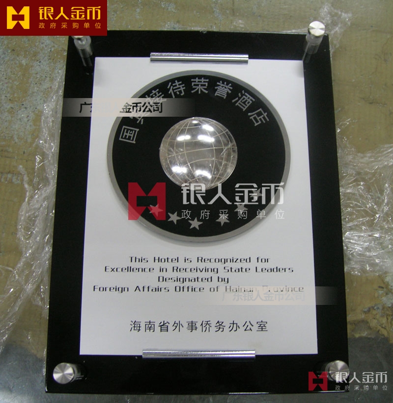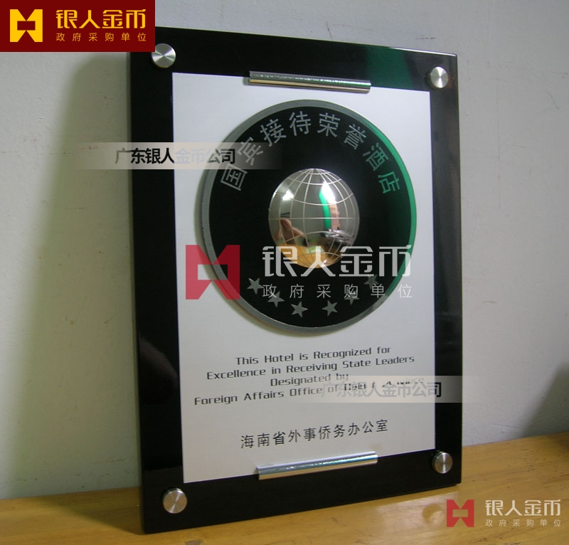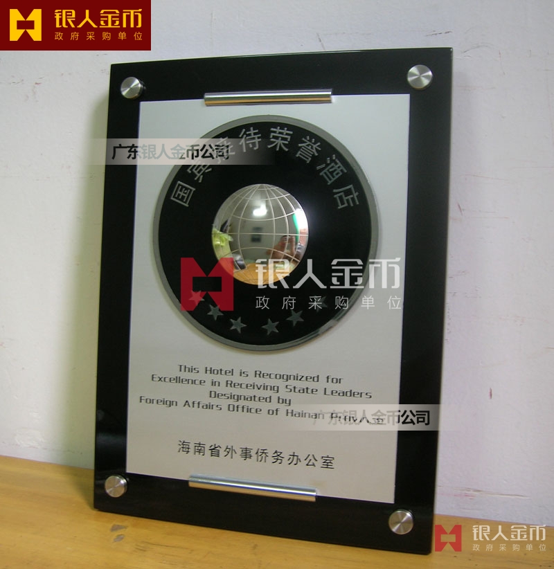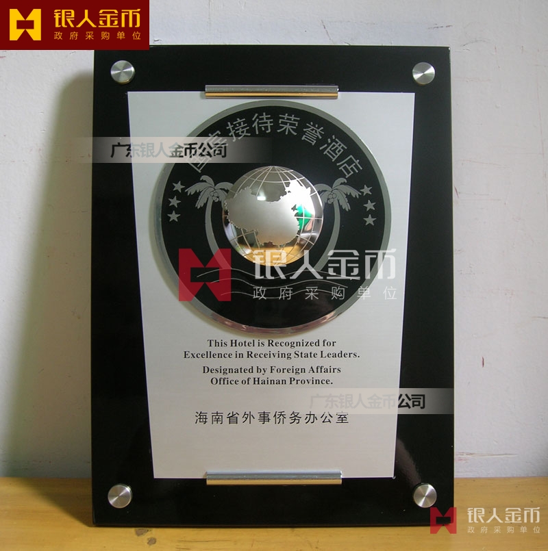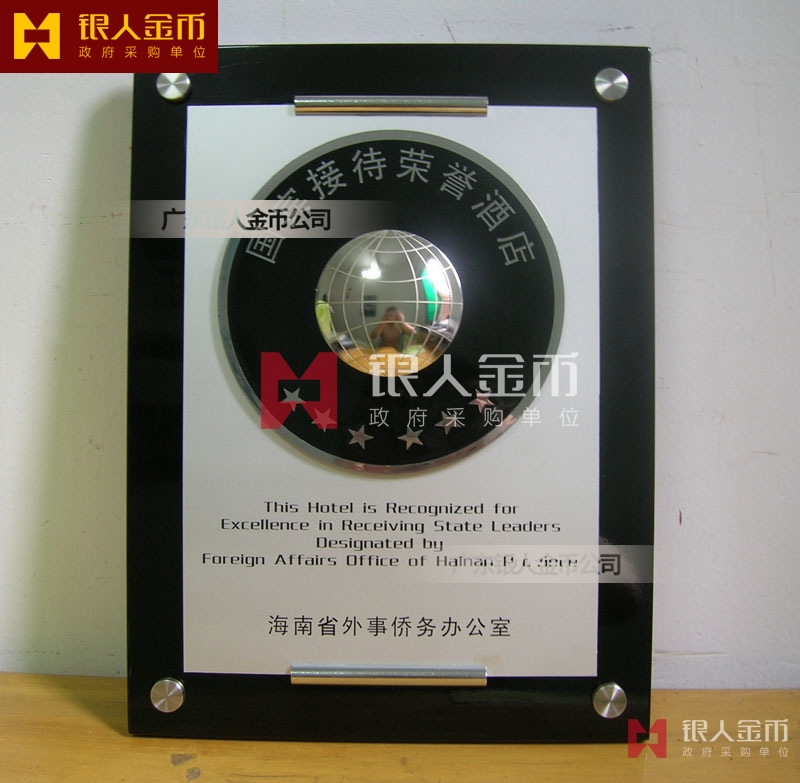 海南省政府外事僑務(wù)辦公室接待元首外賓國(guó)賓接待榮譽(yù)酒店牌匾獎(jiǎng)牌(圖)
