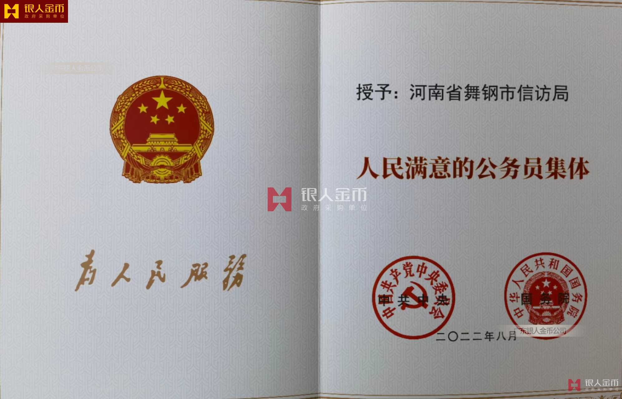 最新!中共中央組織部人民滿意的公務(wù)員集體稱號(hào)獎(jiǎng)勵(lì)證書/榮譽(yù)證書