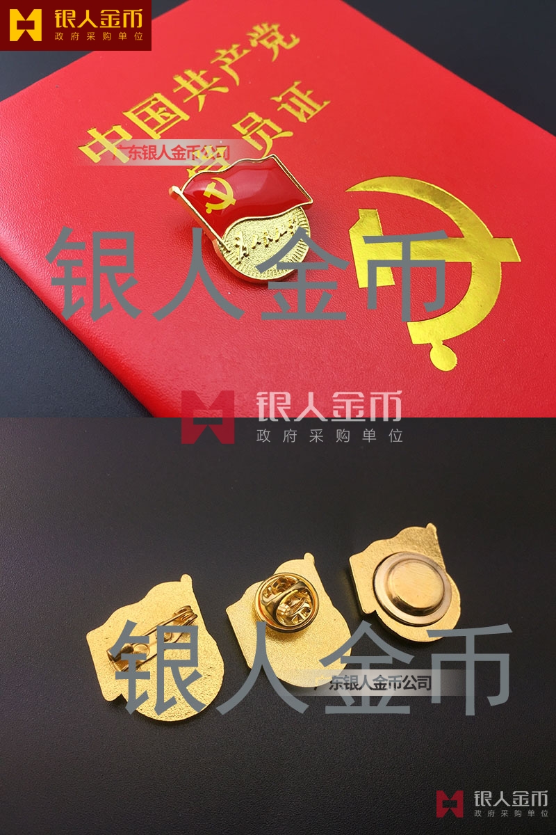一、沿用《關(guān)于窗口單位和服務(wù)行業(yè)黨員佩戴黨員徽章有關(guān)事宜的通知》推薦的黨員徽章式樣,黨員徽章正面上方為中國(guó)共產(chǎn)黨黨旗圖案,下方為圓形圖案,印有“為人民服務(wù)”字樣;背面標(biāo)注xx省(區(qū)、市)或xx部門(mén)(系統(tǒng))黨委組織部監(jiān)制字樣?;照鲁叽鐬?4mm×22.5mm×2mm,材質(zhì)為鋅掛鍍仿金。