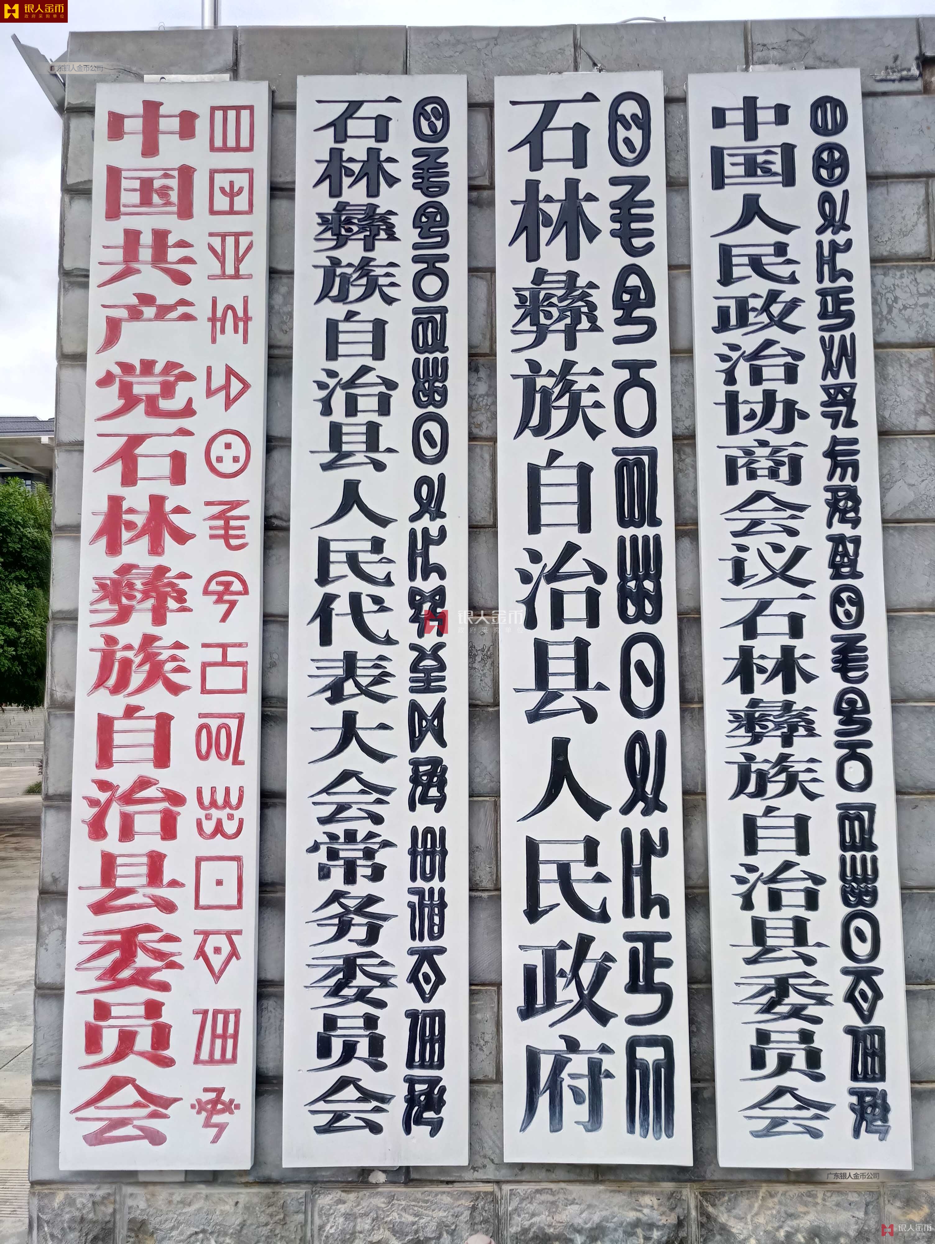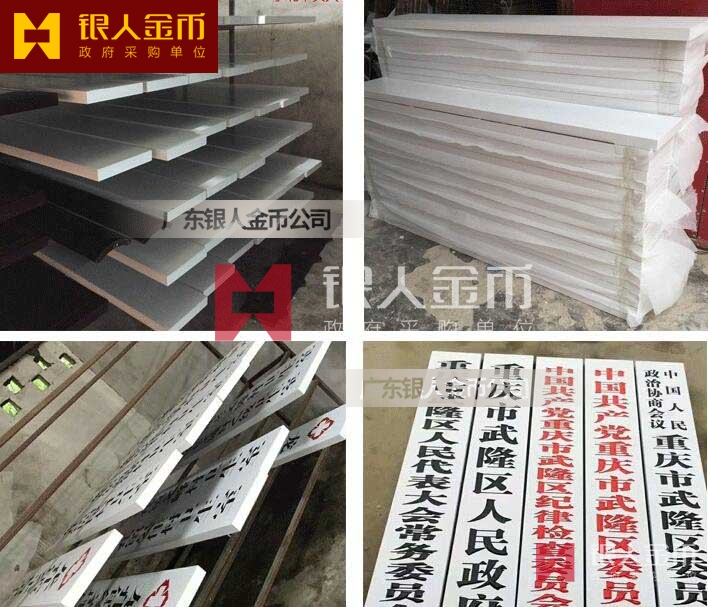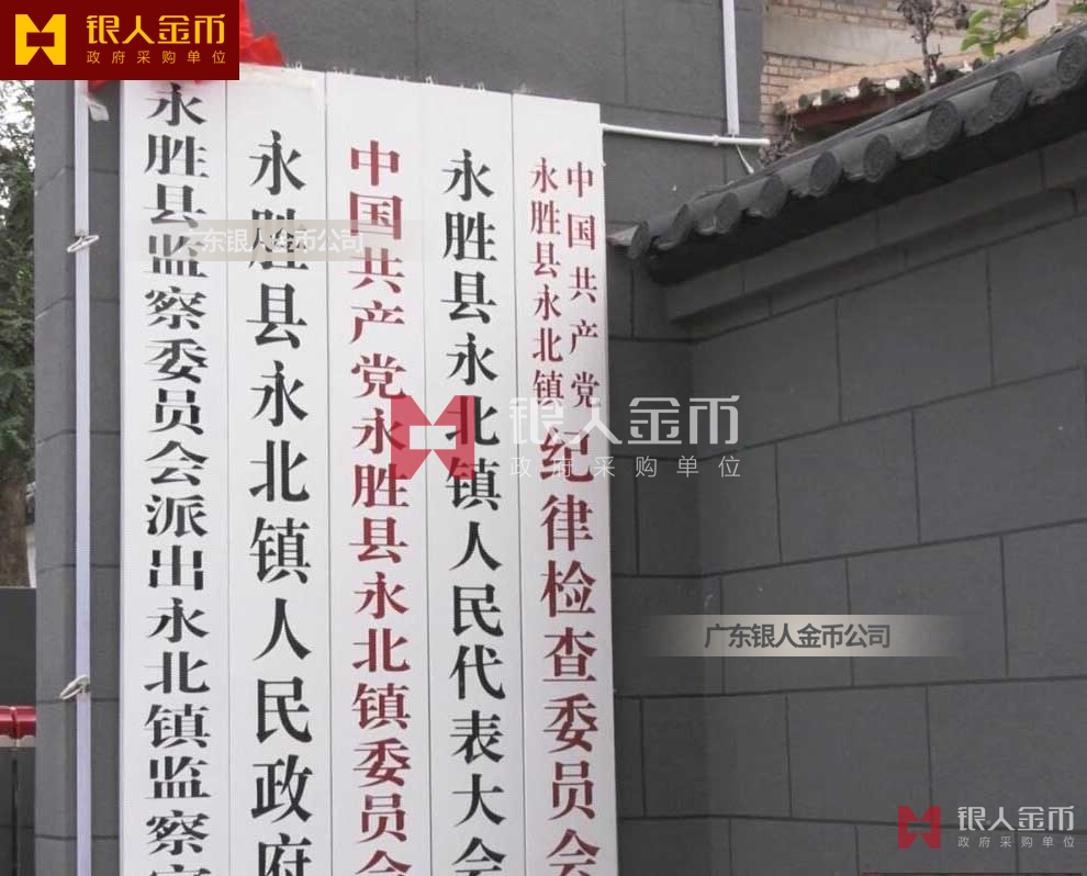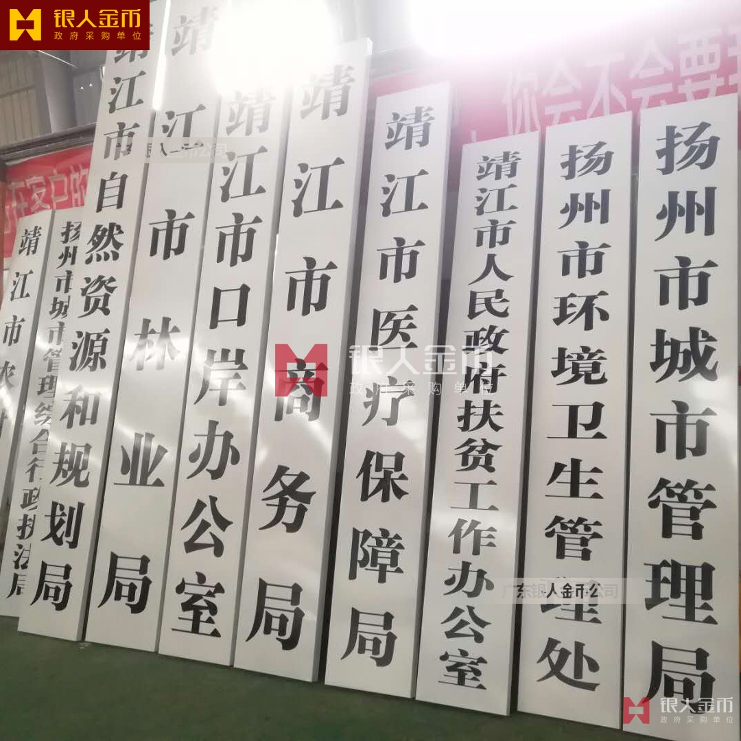 2、標(biāo)牌顏色。黨委及工作機(jī)構(gòu)、派出機(jī)構(gòu)條牌統(tǒng)一為白底紅字;人大常委會(huì)、政府及工作部門(mén)、派出機(jī)構(gòu)、政協(xié)委員會(huì)、審判機(jī)關(guān)、法律監(jiān)督機(jī)關(guān)等國(guó)家行政單位、人民團(tuán)體、事業(yè)單位條牌統(tǒng)一為白底黑字;鄉(xiāng)鎮(zhèn)辦、站、所以及事業(yè)單位方牌統(tǒng)一為鈦金黑字;各級(jí)內(nèi)設(shè)機(jī)構(gòu)門(mén)牌,上方單位名稱(chēng)標(biāo)識(shí)黨委部門(mén)為白底紅字,行政事業(yè)單位為白底黑字,下方科室名稱(chēng)標(biāo)識(shí)統(tǒng)一為藍(lán)底白字,自左向右排列。