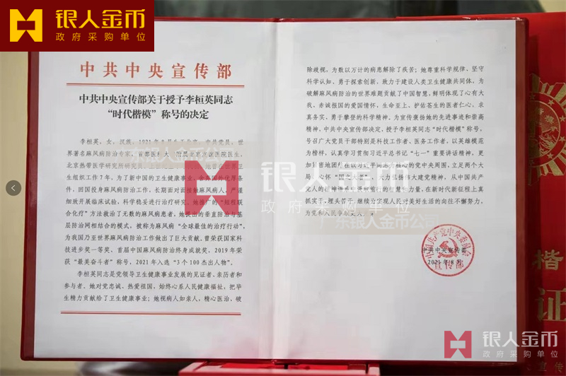 除了負(fù)責(zé)各省市政府部門表彰獎(jiǎng)勵(lì)勛章、獎(jiǎng)?wù)隆⒓o(jì)念章的設(shè)計(jì)、研發(fā)、定制、服務(wù)于榮譽(yù)功勛全生命周期管理,廣東銀人金幣公司還是標(biāo)準(zhǔn)國(guó)標(biāo)999黃金足金金條的制造者之一。同時(shí),還是高端范圍貴金屬產(chǎn)品和頒獎(jiǎng)產(chǎn)品綜合解決方案供應(yīng)商,比如金銀獎(jiǎng)牌、紀(jì)念徽章、胸徽司徽、證章、金銀章等。除此之外,還是重要證章和金銀幣文化產(chǎn)品的制造者,比如黨員徽章、黨徽、體育賽事運(yùn)會(huì)獎(jiǎng)牌、黨政單位授予獎(jiǎng)牌、部分授權(quán)委托生產(chǎn)、設(shè)計(jì)、定制國(guó)家級(jí)榮譽(yù)獎(jiǎng)?wù)录凹o(jì)念章等。