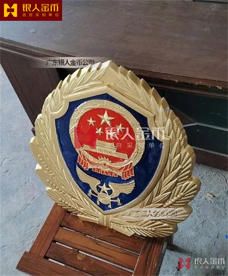 警徽制作 1米警徽壓鑄工藝重量約6公斤,背面有6個(gè)懸掛孔,可承受重量100斤左右,警徽采用鋁合金材質(zhì)制作,重量輕不生銹,警徽具有抗氧化不褪色等各種特點(diǎn);