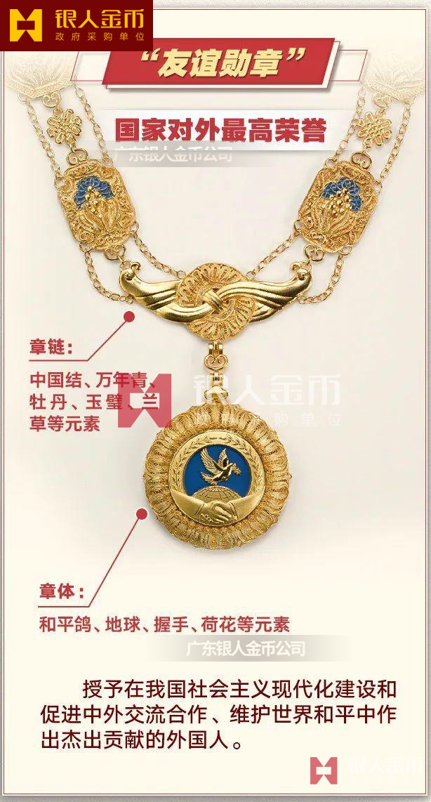 4、友誼勛章是對外最高榮譽,授予在我國社會主義現(xiàn)代化建設(shè)和促進(jìn)中外交流合作、維護(hù)世界和平中作出杰出貢獻(xiàn)的外國人。 截止目前,共有9位外國友人獲得了友誼勛章。