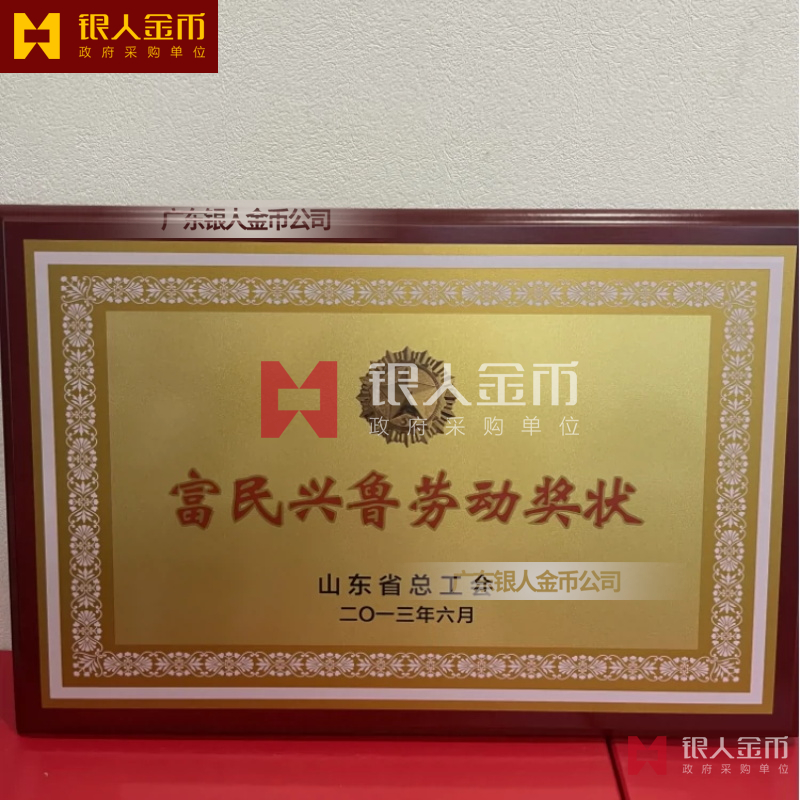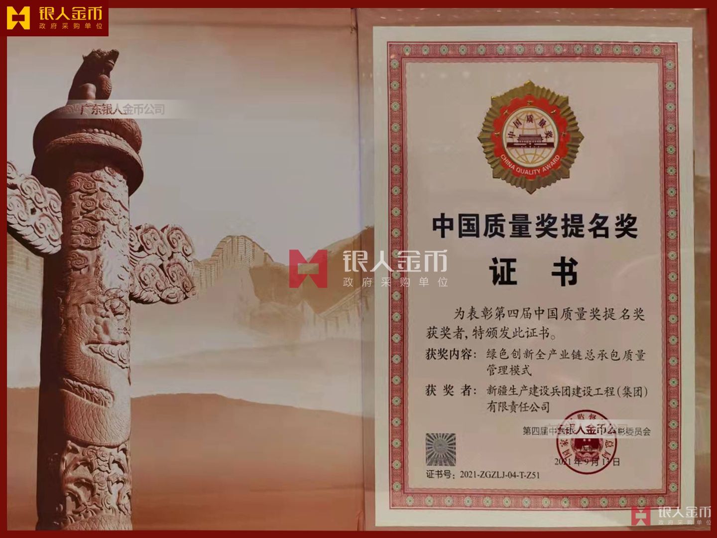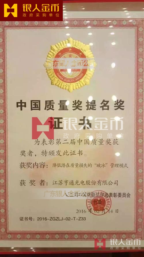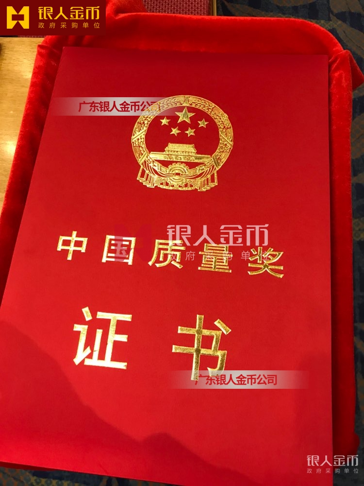 中國質(zhì)量獎獎?wù)陋勁篇劚白C書(圖)【廣州銀人獎?wù)伦C章廠有限公司】