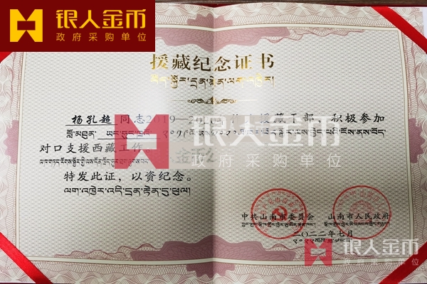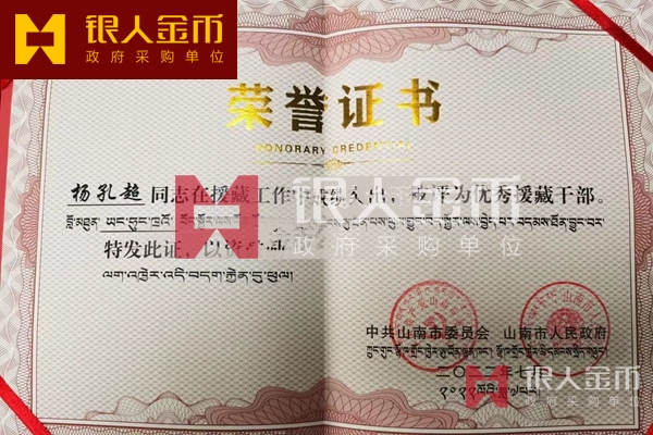 優(yōu)秀援藏干部獲獎(jiǎng)證書