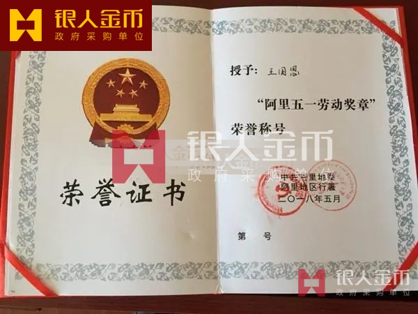 西藏自治區(qū)阿里地委、阿里地區(qū)行署頒發(fā)阿里五一勞動(dòng)章獎(jiǎng)牌紀(jì)念章證書