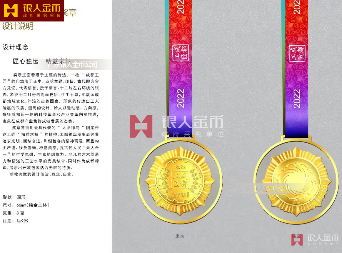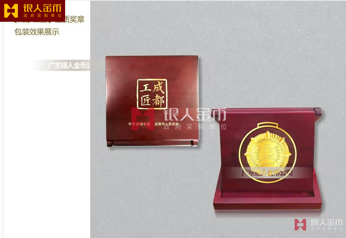 中共成都市委市政府“成都工匠”金質(zhì)獎?wù)轮谱?純金獎牌定做純金獎?wù)掠喼婆c證書定制(圖)