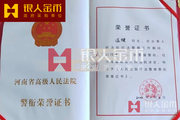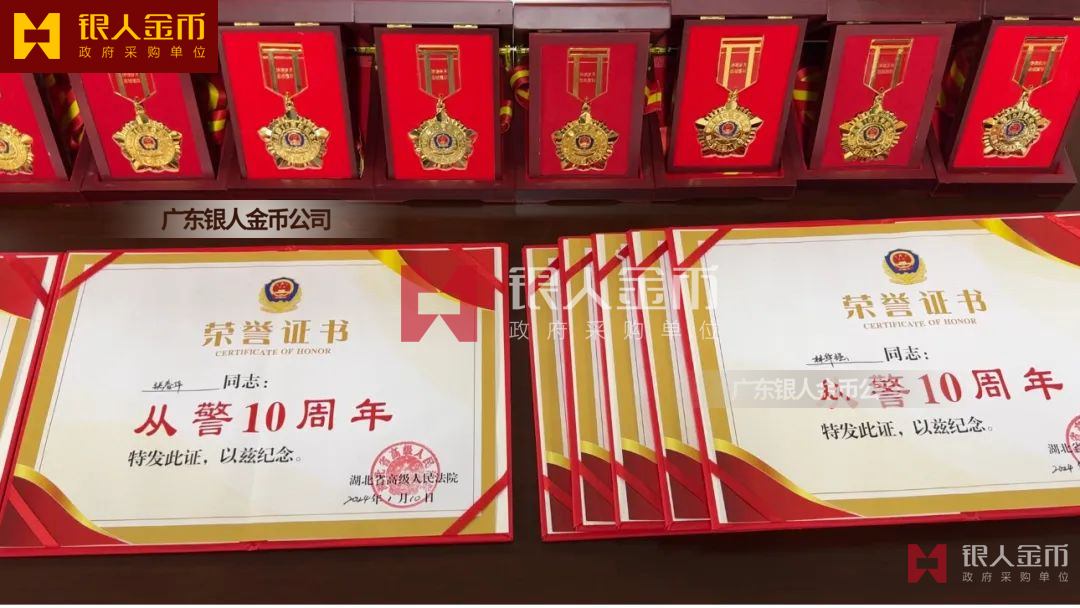 當(dāng)陽市人民法院司法警察從警10年從警20年榮譽紀(jì)念章及榮譽證書和司法警察光榮退休榮譽章及證書(圖)