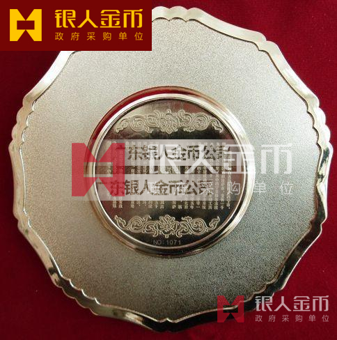 “紀念青藏鐵路開通蓮花寶石浮雕金盤”,限量9999枚,該盤的設計新穎,浮雕工藝細致精美,以華表、長城、布達拉宮等浮雕,體現(xiàn)偉大中華的時代風貌和濃郁的民族風情。金盤采用先進工藝開模鑄造,鍍金、銀,并鑲嵌9顆天然珠寶,并由中國地質(zhì)學會寶石委員會權威鑒定,具有較高的文化、藝術品位和收藏價值。