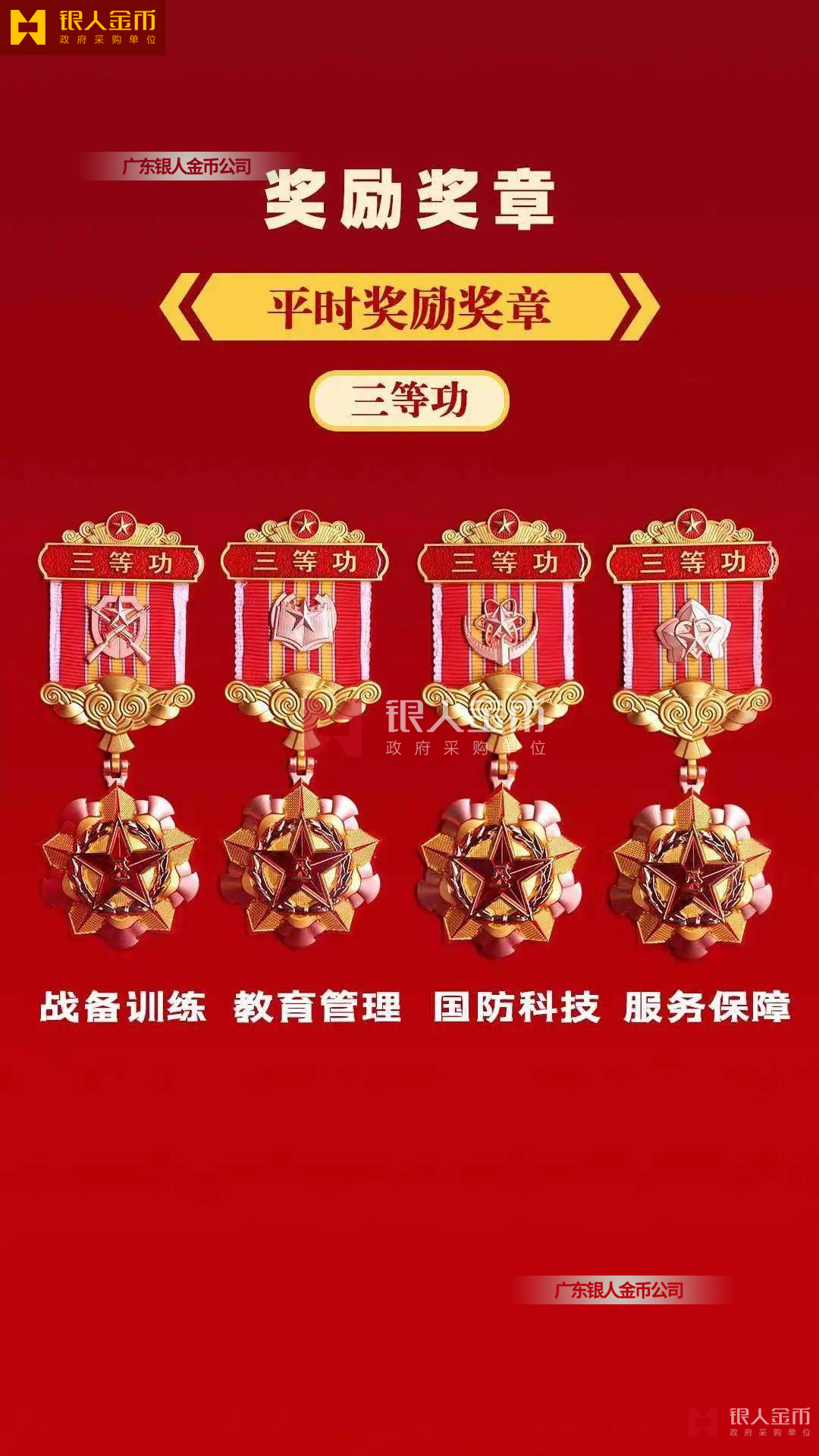 個(gè)人三等功(戰(zhàn)備訓(xùn)練)、個(gè)人三等功(教育管理)、個(gè)人三等功(國(guó)防科技)、個(gè)人三等功(勤務(wù)保障)