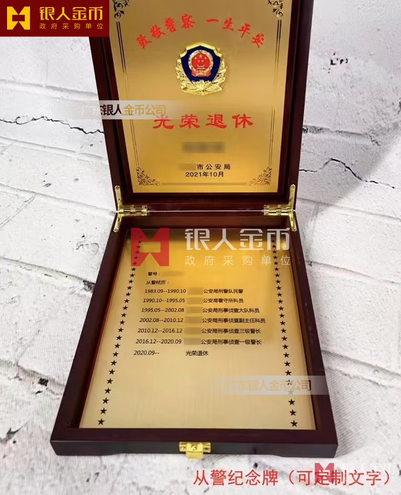 警察入警從警紀(jì)念牌,民警榮休紀(jì)念獎(jiǎng)牌擺件-【《公安機(jī)關(guān)人民警察榮譽(yù)儀式規(guī)范(試行)》】