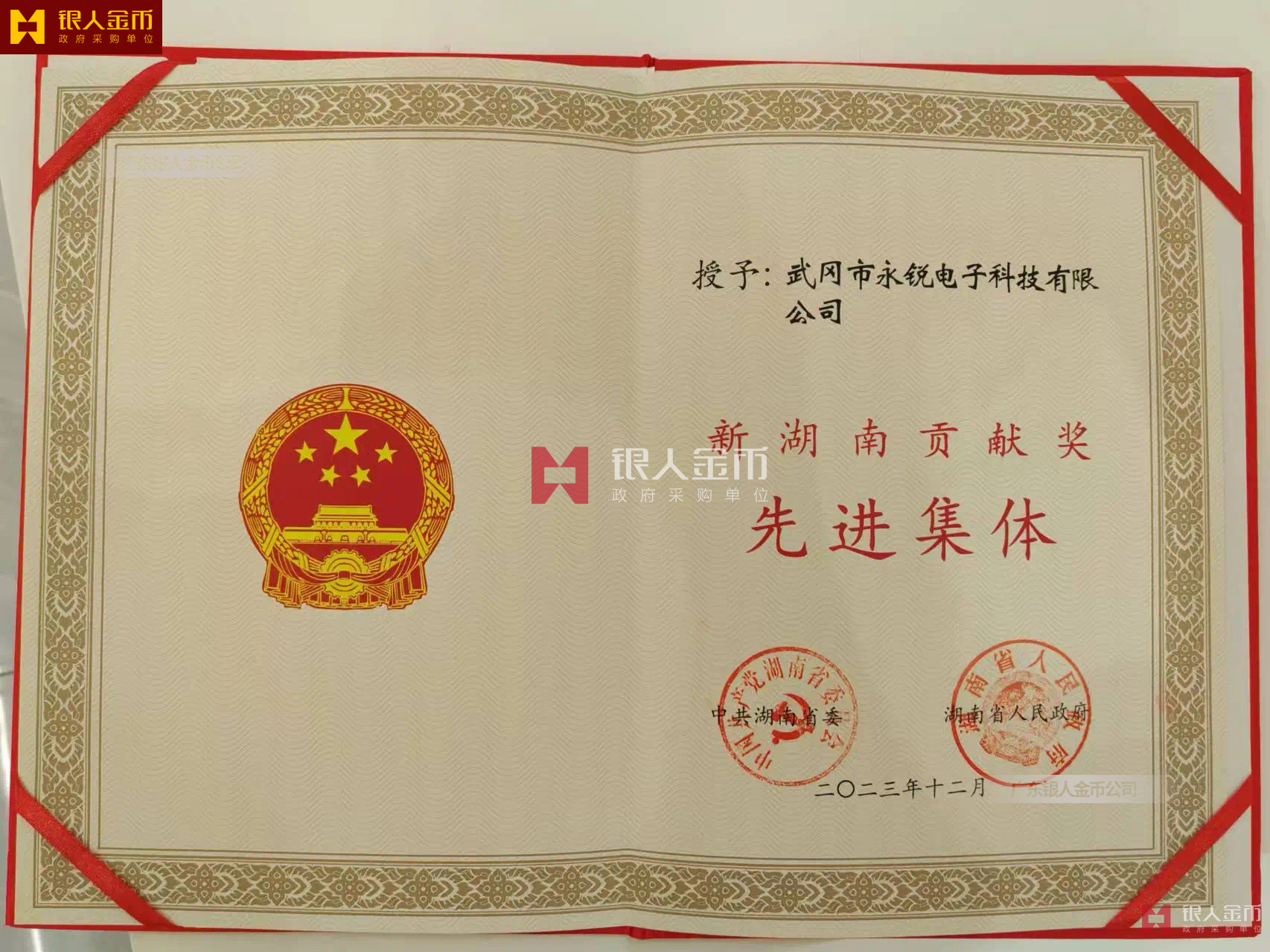 中共湖南省委、湖南省人民政府——新湖南貢獻(xiàn)獎(jiǎng)先進(jìn)集體證書(榮譽(yù)證書、獎(jiǎng)勵(lì)證書)