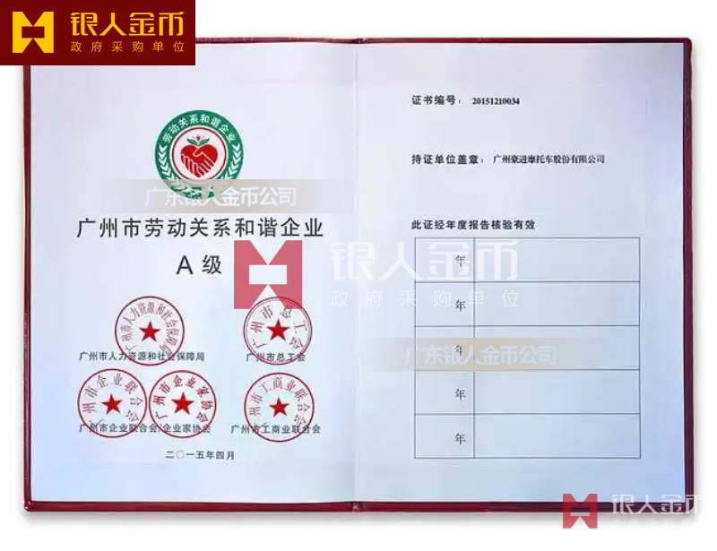 全國(guó)和諧勞動(dòng)關(guān)系創(chuàng)建工作先進(jìn)集體”稱號(hào)獎(jiǎng)牌、證書