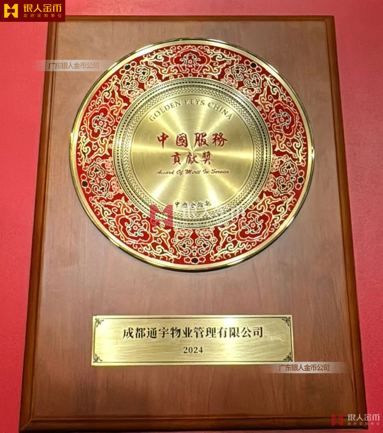中國(guó)金鑰匙年度“中國(guó)服務(wù)示范企業(yè)”獎(jiǎng)牌牌匾與“中國(guó)服務(wù)貢獻(xiàn)獎(jiǎng)”獎(jiǎng)牌牌匾(圖)