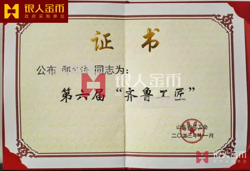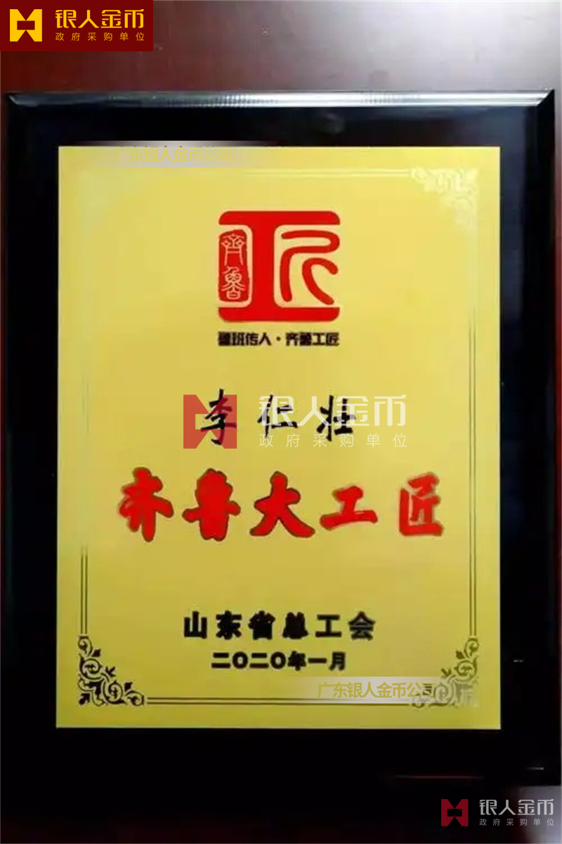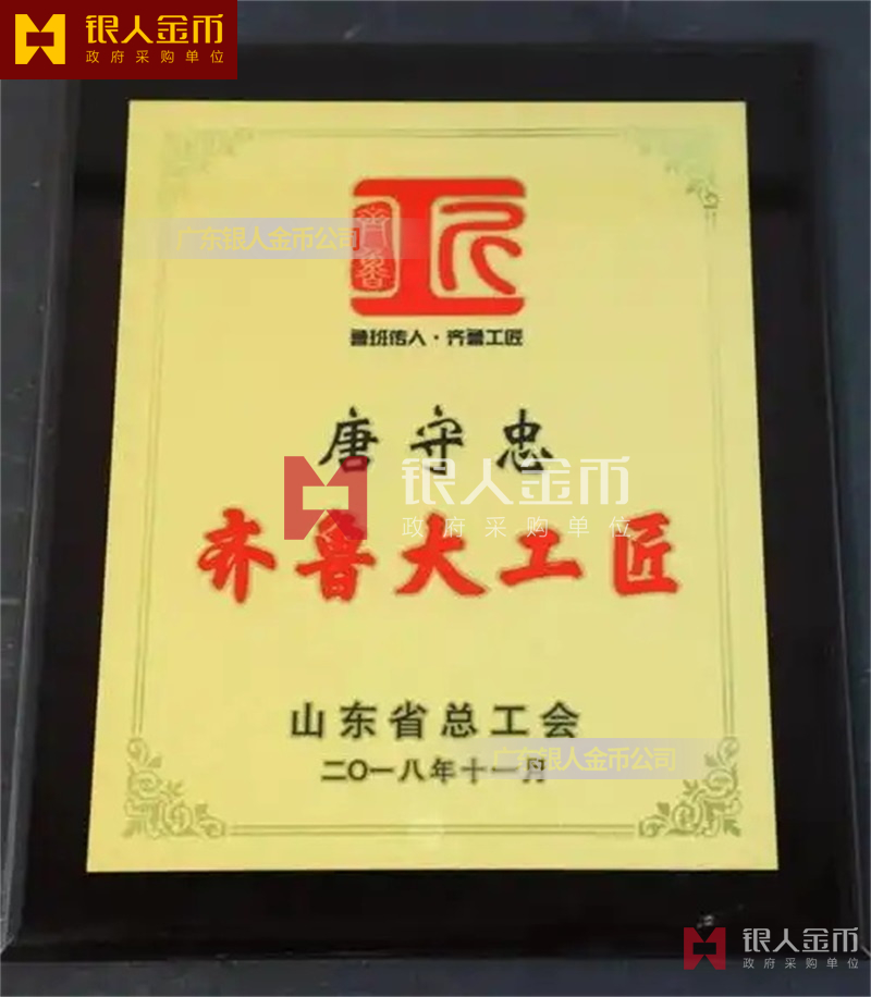 山東省委省政府省人社廳省總工會齊魯大工匠獎?wù)聞渍慢R魯大工匠獎杯獎牌證書(圖)