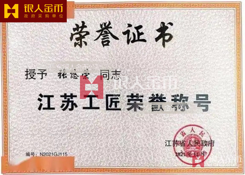 中共江蘇省委省政府省人社廳省總工會江蘇大工匠獎?wù)聞渍陆K工匠徽章獎牌證書(圖)