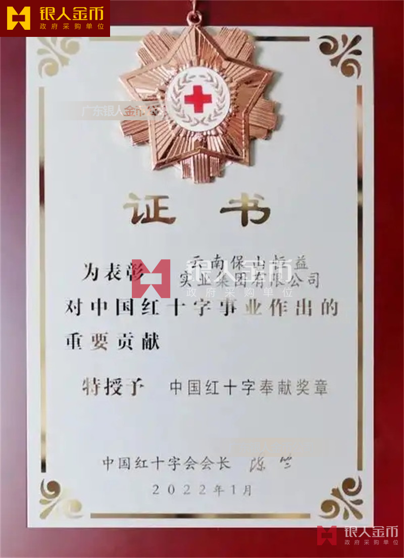 中國紅十字會(huì)總會(huì)公益事業(yè)的榮譽(yù):中國紅十字會(huì)奉獻(xiàn)獎(jiǎng)?wù)聞渍陋?jiǎng)牌證書(圖)-【制作標(biāo)準(zhǔn)規(guī)范】