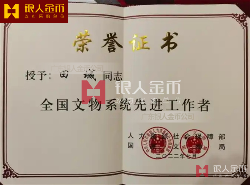 國家文物局全國文物系統(tǒng)先進(jìn)集體與先進(jìn)工作者獎?wù)聞渍录o(jì)念章獎牌證書(圖)