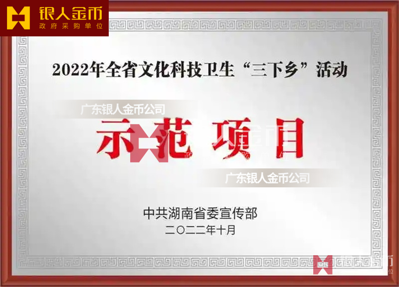 中共湖南省委宣傳部全省文化科技衛(wèi)生三下鄉(xiāng)示范項目獎牌牌匾銅牌證書(圖)