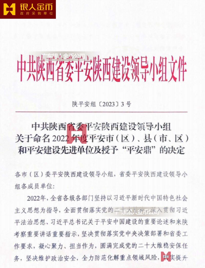 中共陜西省委政法委員會金鼎銀鼎銅鼎平安鼎和平安市區(qū)縣獎牌證書(圖)中共陜西省委平安陜西建設(shè)工作領(lǐng)導(dǎo)小組辦公室監(jiān)制頒發(fā)頒授