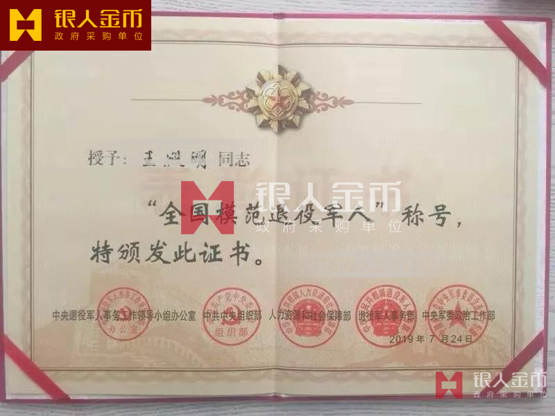 中央軍委政治部監(jiān)制全國(guó)模范退役軍人獎(jiǎng)?wù)聞渍录o(jì)念章證章徽章胸章獎(jiǎng)牌證書(圖)-【制定標(biāo)準(zhǔn)】