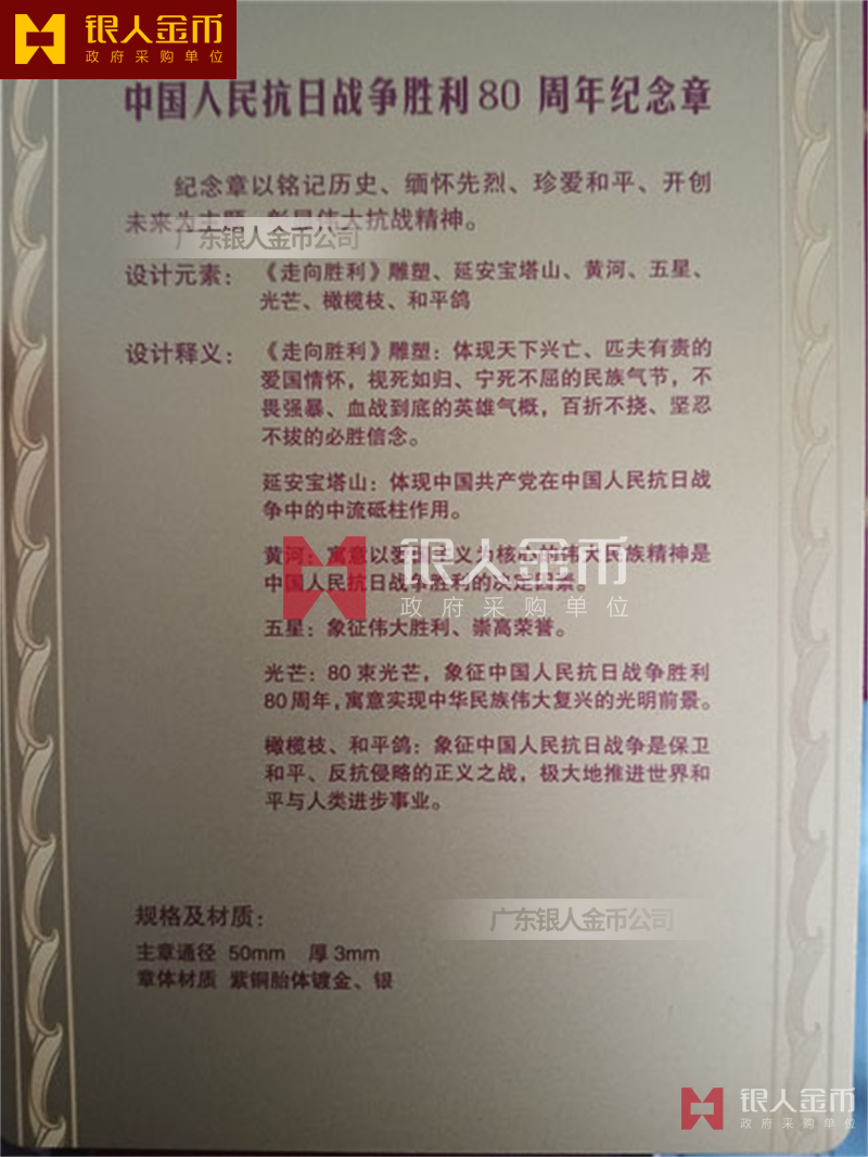 很抱歉,目前公開信息中未提及“中國人民抗日戰(zhàn)爭勝利80周年”紀念章的具體生產(chǎn)商。該紀念章由 中共中央 、 國務院 、 中央軍委 統(tǒng)一制作頒發(fā),屬于國家層面的紀念品,其生產(chǎn)過程和供應商信息屬于保密范疇。 ?“中國人民抗日戰(zhàn)爭勝利80周年”紀念章生產(chǎn)商