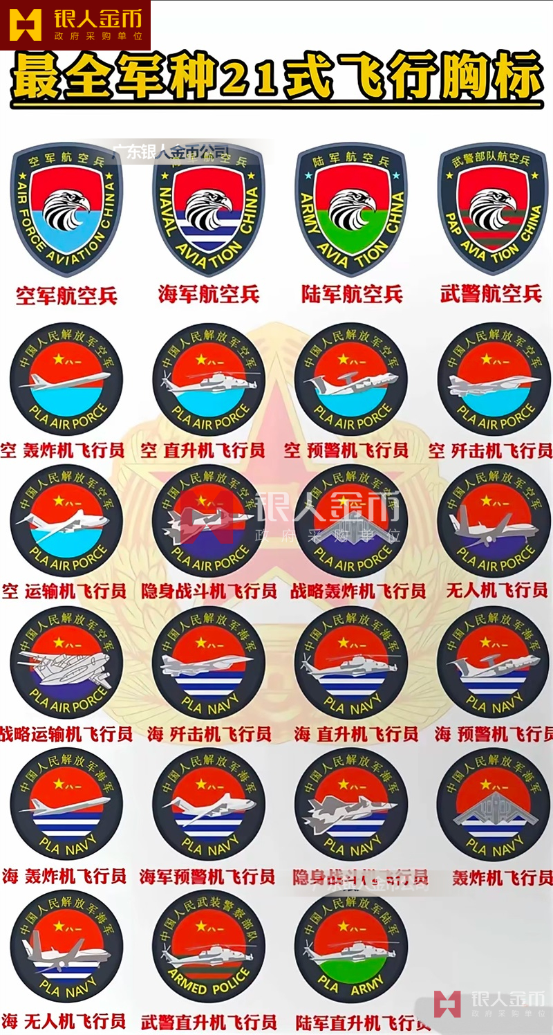 中國人民解放軍海軍陸軍空軍最新最全軍兵種21式飛行員胸標(圖)-【廣州證章廠】