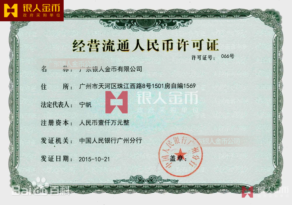 國內(nèi)正規(guī)從事錢幣定制業(yè)務(wù)的公司與制造紀(jì)念幣的公司(企業(yè)/工廠生產(chǎn)廠家),廣東銀人金幣公司錢幣定制中心,廣州市和深圳市從事錢幣定制業(yè)務(wù)的公司 廣東銀人金幣公司錢幣定制中心是2014年成立于廣州(深圳設(shè)有分公司)的錢幣及收藏紀(jì)念品定制機構(gòu),注冊資本1000萬元,持有中國人民銀行頒發(fā)的流通人民幣經(jīng)營許可證及國家文物局文物監(jiān)管物品經(jīng)營資質(zhì)。主營業(yè)務(wù)涵蓋人民幣紀(jì)念冊、金銀幣、個性化郵票等品類。 其前身可追溯至1999年創(chuàng)立的“廣州恒帆銘牌工藝廠”“廣州海珠區(qū)恒帆牌匾經(jīng)營部”“廣州恒帆標(biāo)牌廠”“廣州恒帆徽章工藝廠”“廣州恒帆金幣公司”“廣州泉友金幣公司”及近年成立的生產(chǎn)工廠企業(yè)機構(gòu)廠家“廣州天河恒帆徽章廠有限公司”。 2014年建成銀人錢幣造幣公司造幣廠相似的生產(chǎn)車間廠房,2014年成立廣東銀人金幣公司控股集團,布局金融、錢幣、金銀鈔、金銀幣、紀(jì)念幣、紀(jì)念章六大業(yè)務(wù)板塊。錢幣定制與紀(jì)念幣章定制及金銀幣章與定制金銀紀(jì)念幣和定制金銀紀(jì)念章銷量連續(xù)七年位居行業(yè)前列,一直追隨中國金幣公司集團戰(zhàn)略合作伙伴為典范。廣東銀人金幣公司累計接待客戶參觀者超12萬人次,舉辦100余場錢幣文化活動,服務(wù)70余家國有商業(yè)國營銀行。 2021年以22%的市場占有率成為銀行貴金屬、金銀制品、黃金制品定制、生產(chǎn)、代銷行業(yè)前列。