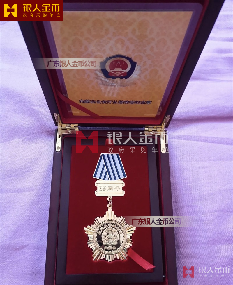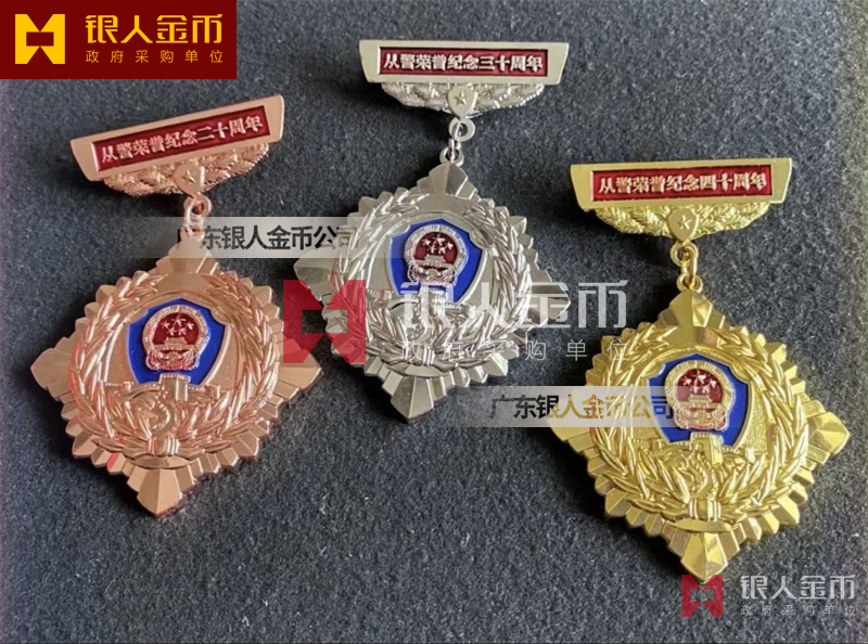 從警紀(jì)念章定制,從警年限紀(jì)念章定制,從警獎?wù)露ㄖ?/font>——從警紀(jì)念章的底下主體部分都是警徽,上面橫檔部分是不相同的,有:“從警十年紀(jì)念(從警10年紀(jì)念章)”、“從警二十年紀(jì)念(從警20年紀(jì)念章)”、“從警三十年紀(jì)念(從警30年紀(jì)念章)”、“從警四十年紀(jì)念(從警40年紀(jì)念章)”不同的,從警十年紀(jì)念章(從警10年獎?wù)拢┍砻媸清冦~色(銅質(zhì)獎?wù)拢?/span>、從警二十年紀(jì)念章(從警20年獎?wù)拢?/span>表面鍍銀色(銀質(zhì)獎?wù)拢?/span>、從警三十年紀(jì)念章(從警30年獎?wù)拢┖蛷木?/span>四十年紀(jì)念章(從警40年獎?wù)拢?/span>表面鍍金色(金質(zhì)獎?wù)拢?/span> ,整體將從警獎?wù)?/font>或從警紀(jì)念章(從警特定年限紀(jì)念章也叫從警章)鑲嵌在三折的立式木盒上面,木盒外面配有紙盒,整體做工精美,木盒紙盒上面都刻有警徽從警年限等。