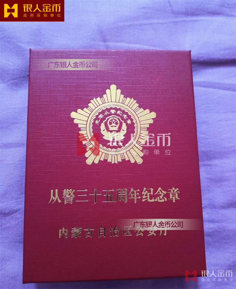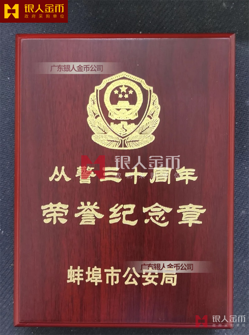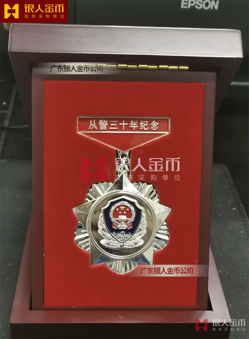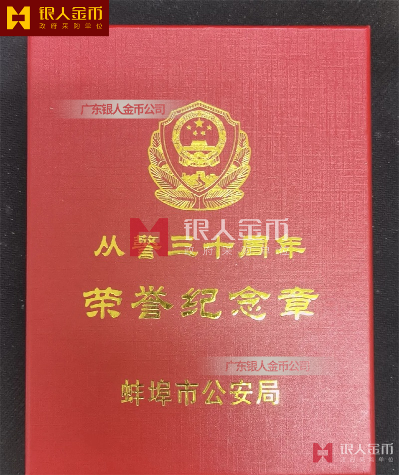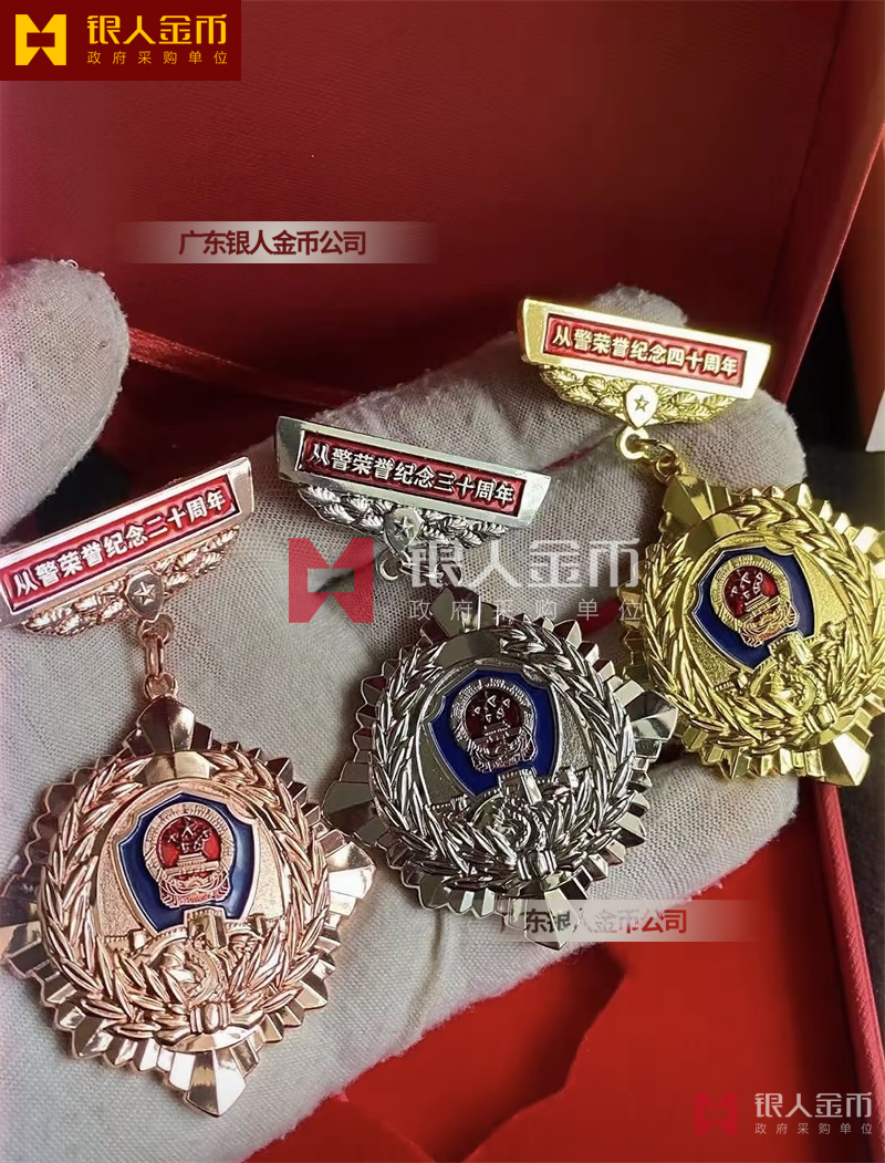 從警紀(jì)念章定制,從警年限紀(jì)念章定制,從警獎(jiǎng)?wù)露ㄖ?/font>——從警紀(jì)念章的底下主體部分都是警徽,上面橫檔部分是不相同的,有:“從警十年紀(jì)念(從警10年紀(jì)念章)”、“從警二十年紀(jì)念(從警20年紀(jì)念章)”、“從警三十年紀(jì)念(從警30年紀(jì)念章)”、“從警四十年紀(jì)念(從警40年紀(jì)念章)”不同的,從警十年紀(jì)念章(從警10年獎(jiǎng)?wù)拢┍砻媸清冦~色(銅質(zhì)獎(jiǎng)?wù)拢?/span>、從警二十年紀(jì)念章(從警20年獎(jiǎng)?wù)拢?/span>表面鍍銀色(銀質(zhì)獎(jiǎng)?wù)拢?/span>、從警三十年紀(jì)念章(從警30年獎(jiǎng)?wù)拢┖蛷木?/span>四十年紀(jì)念章(從警40年獎(jiǎng)?wù)拢?/span>表面鍍金色(金質(zhì)獎(jiǎng)?wù)拢?/span> ,整體將從警獎(jiǎng)?wù)?/font>或從警紀(jì)念章(從警特定年限紀(jì)念章也叫從警章)鑲嵌在三折的立式木盒上面,木盒外面配有紙盒,整體做工精美,木盒紙盒上面都刻有警徽從警年限等。