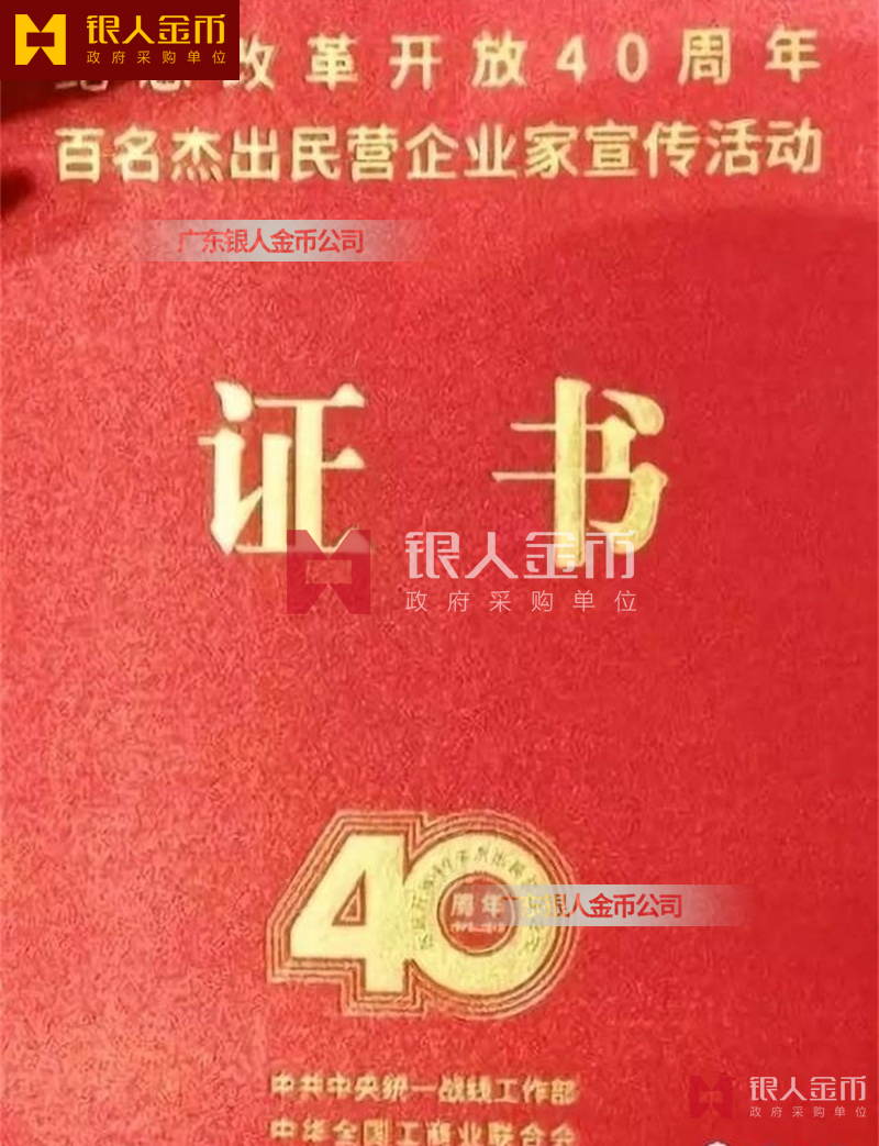 中共中央統(tǒng)戰(zhàn)部全國工商聯(lián)改革開放40年百名杰出民營企業(yè)家獎(jiǎng)?wù)录o(jì)念章獎(jiǎng)牌證書(圖)