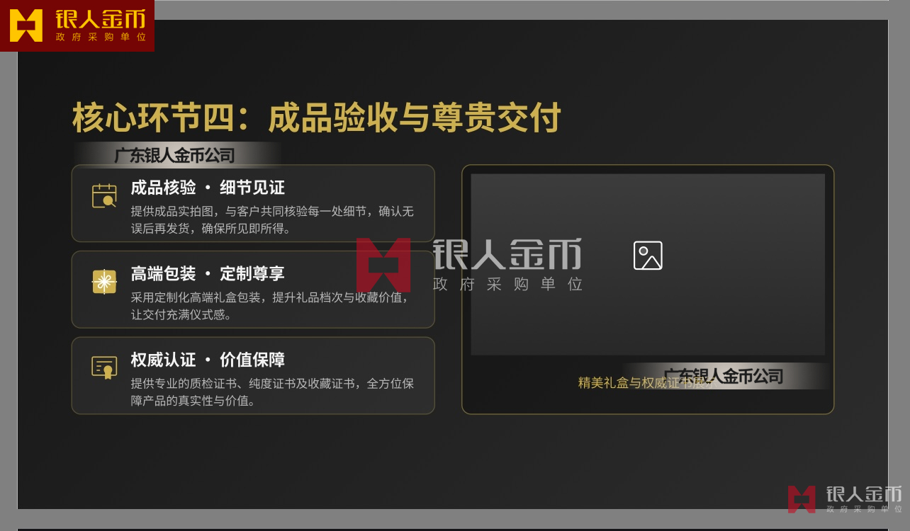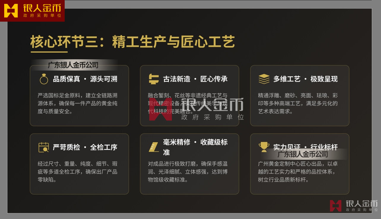 廣東銀人金幣公司已建立黃金白銀原料采購(gòu)、生產(chǎn)加工、出廠檢驗(yàn)、倉(cāng)儲(chǔ)物流、送貨上門、安全無(wú)憂、全鏈條閉環(huán)管控與金銀純度品質(zhì)全程可追溯體系。