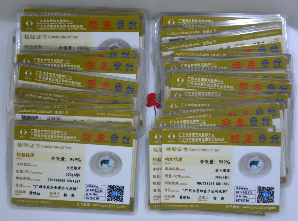 廣東省質(zhì)監(jiān)局白銀千足銀純銀檢測證書
