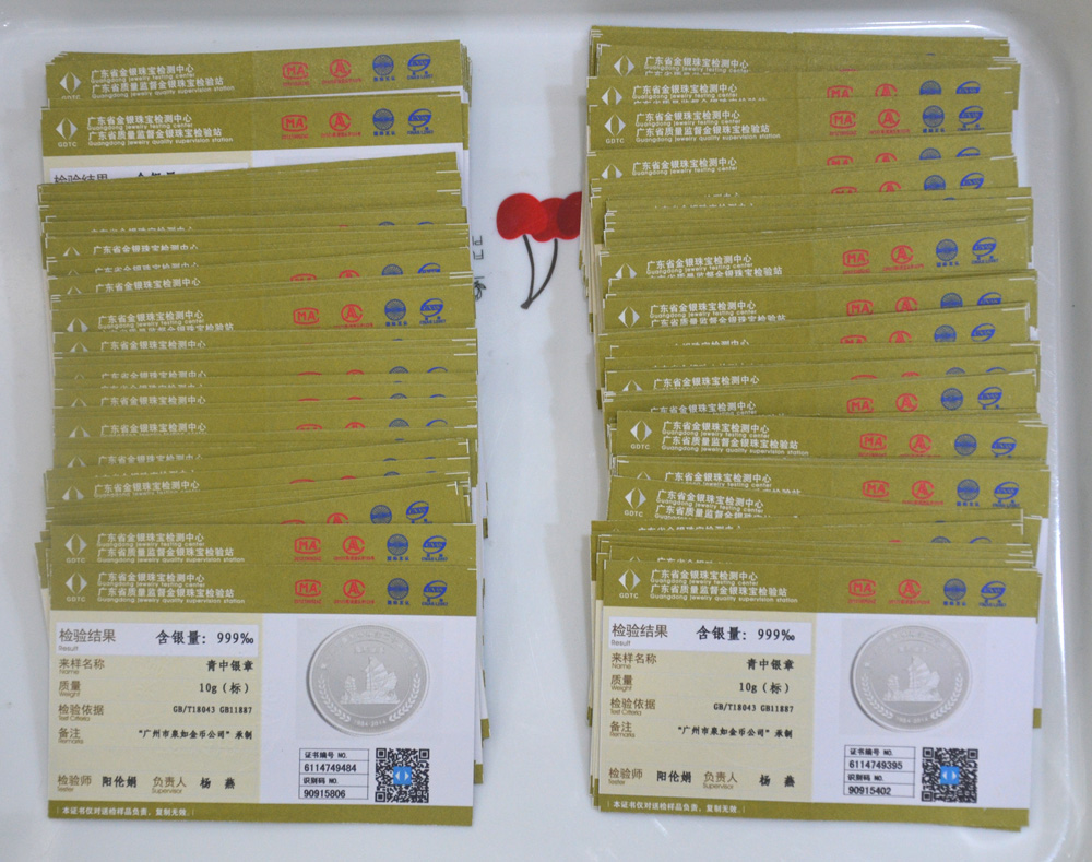 廣東省質(zhì)監(jiān)局打造純金銀幣制造鑒定證書
