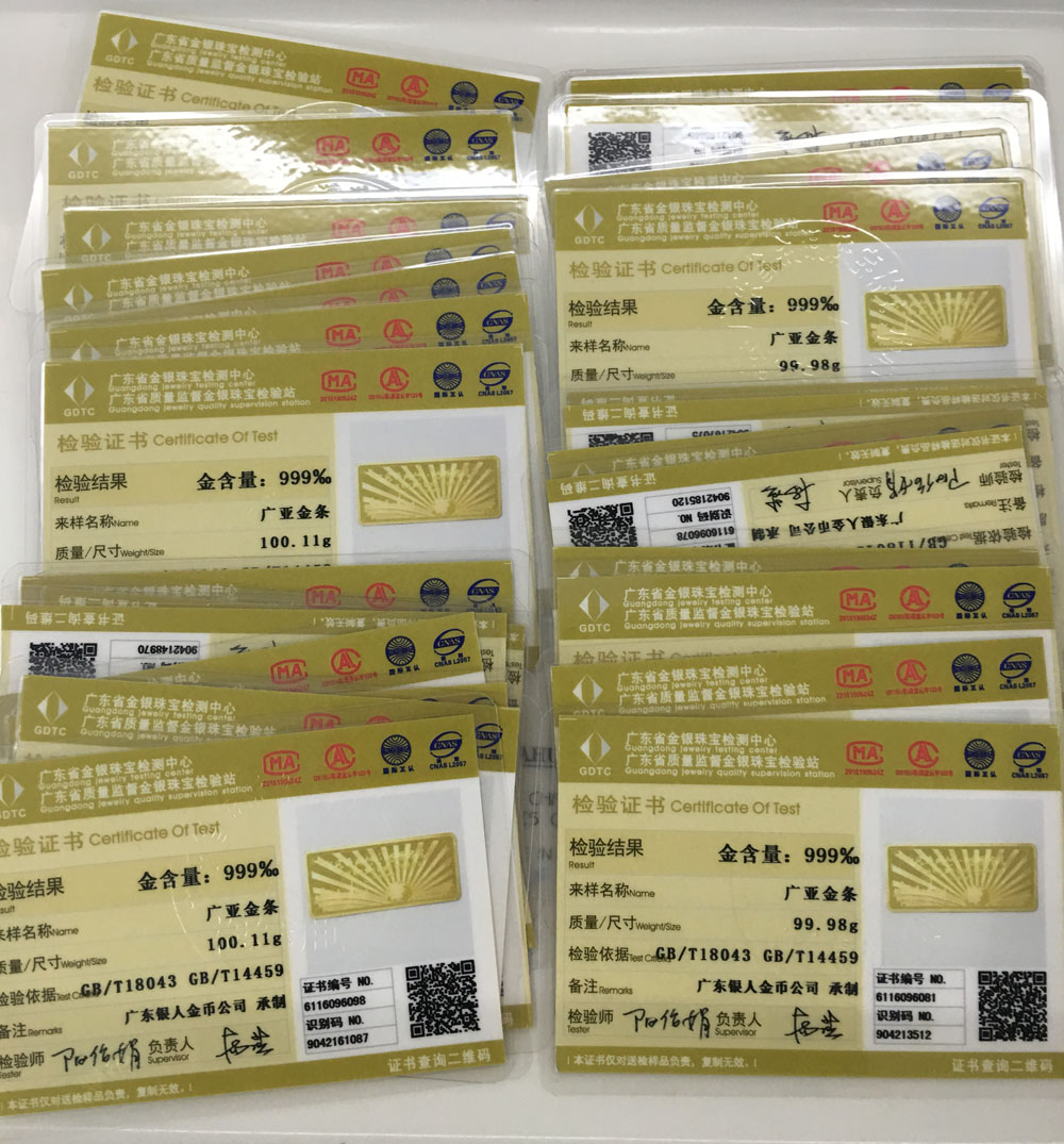 國家質(zhì)監(jiān)部門黃金金銀鑒定證書