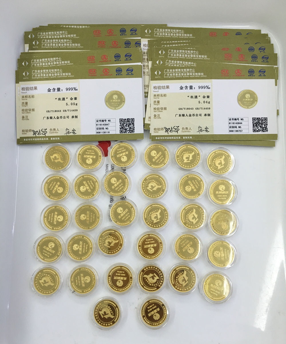 國家權(quán)威機構(gòu)純金紀念幣含金量檢測證書