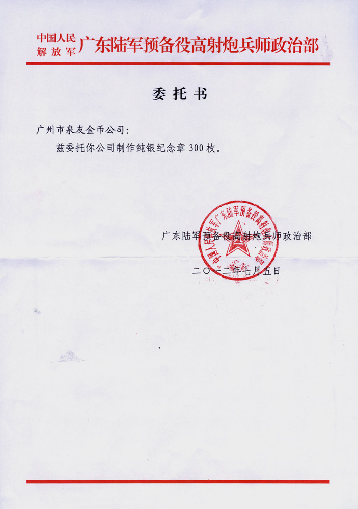廣東省軍區(qū)某師公函
