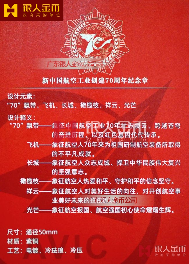 新中國航空工業(yè)創(chuàng)建70周年紀念章制作設(shè)計定制訂制說明