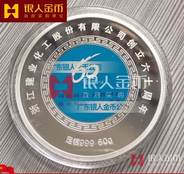 浙江建業(yè)化工公司成立60周年慶銀質(zhì)紀念章定制與銀制紀念章定做(圖)