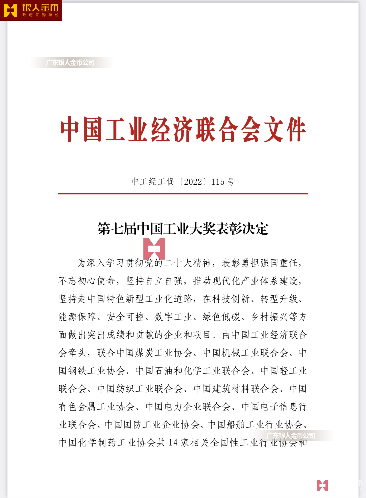中國工業(yè)大獎(jiǎng)是2004年經(jīng)國務(wù)院批準(zhǔn)設(shè)立的我國工業(yè)領(lǐng)域最高獎(jiǎng)項(xiàng),被譽(yù)為中國工業(yè)的“奧斯卡”。該獎(jiǎng)項(xiàng)為表彰堅(jiān)持科學(xué)發(fā)展觀、走中國特色新型工業(yè)化道路,代表我國工業(yè)化的方向、道路和精神,代表工業(yè)發(fā)展最高水平,在科技創(chuàng)新、轉(zhuǎn)型升級(jí)、能源保障、綠色低碳等方面表現(xiàn)卓越,對(duì)增強(qiáng)綜合國力、推動(dòng)國民經(jīng)濟(jì)發(fā)展做出重大貢獻(xiàn)的工業(yè)企業(yè)和項(xiàng)目。