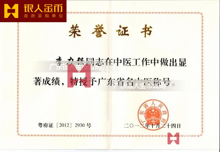 首都名醫(yī)、廣東省名中醫(yī)、獎章勛章獎牌證章和證書
