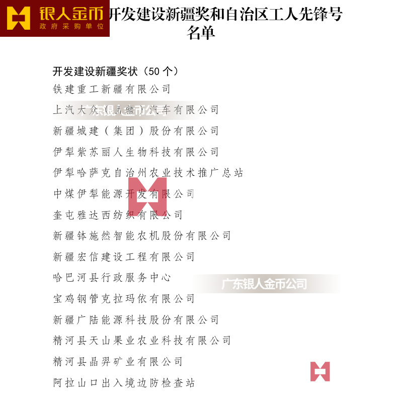 新疆維吾爾自治區(qū)黨委“開發(fā)建設(shè)新疆獎?wù)隆奔础拔濉ひ粍趧营務(wù)?工人先鋒號獎狀/獎牌/證書(圖)含新疆生產(chǎn)建設(shè)兵團及獲獎名單